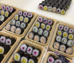 朝は、弁当・おすし・いなり をつくるチームに分かれます そこで、弁当・巻きずし・いなり などの具材をつくります その後に、ベルトコンベアーのライン作業で盛り合わせをして、完成です #飲食料品製造業 |