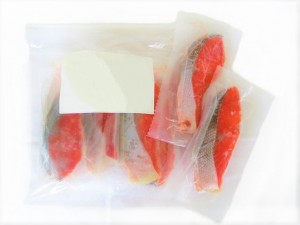 ⑧できあがった鮭を真空パックし、冷凍庫へ運びます
